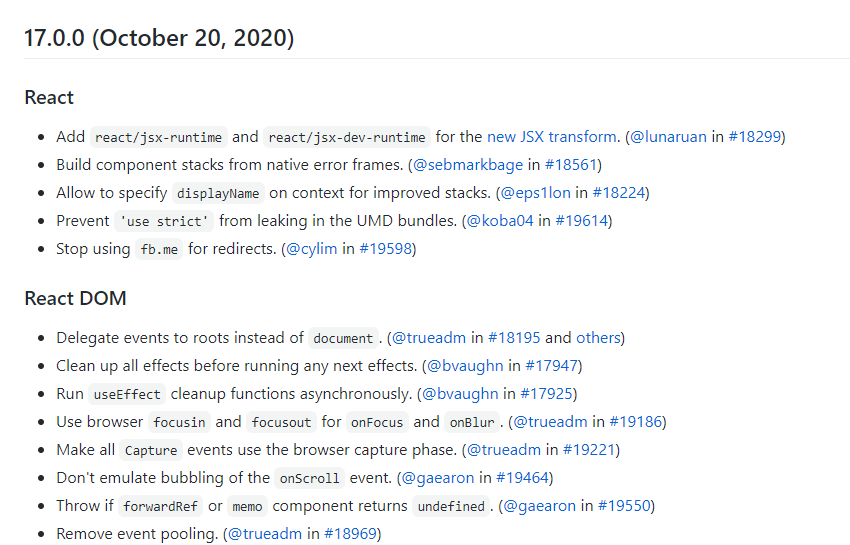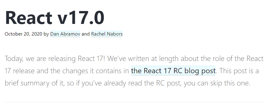 2020년 10월 20일 React는 v17을 release했습니다.